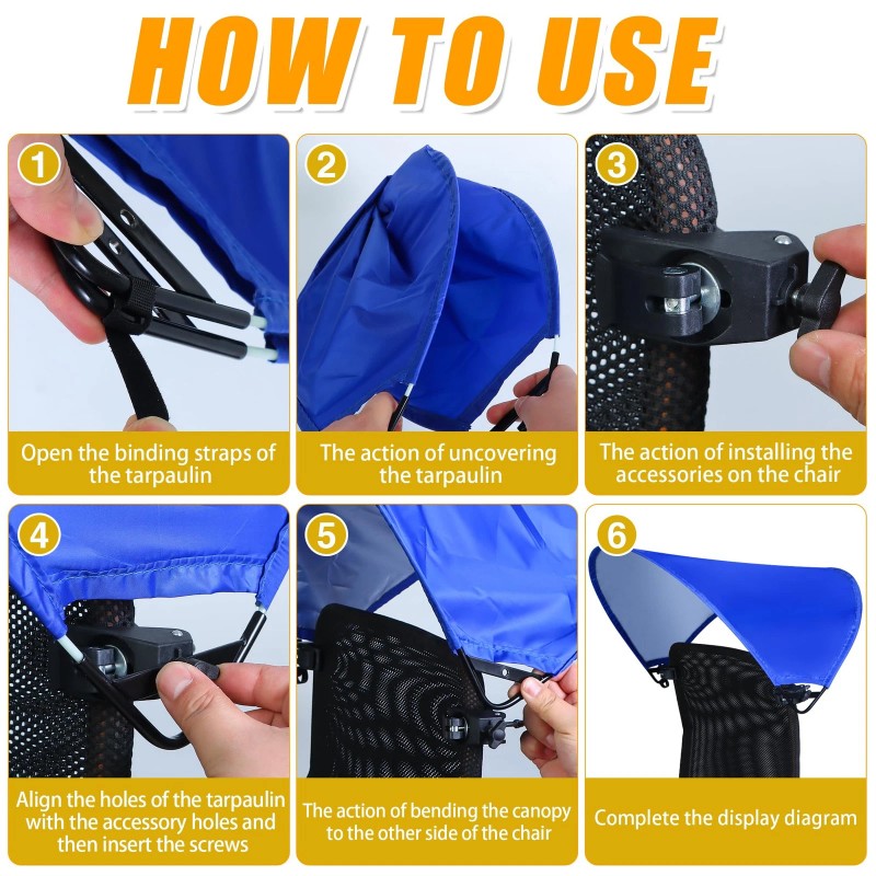 Atvkov Beach Chair Canopy Foldable Chair Umbrella Sun Shade Attachment for Beach Cam