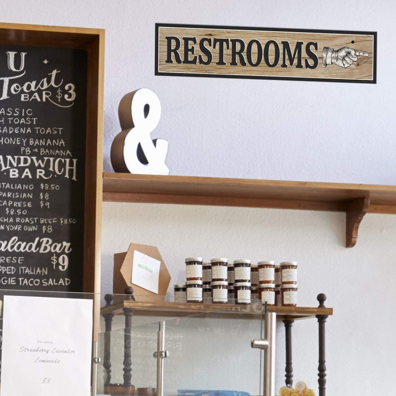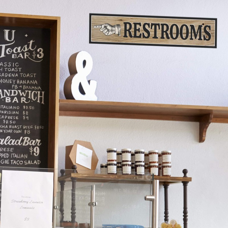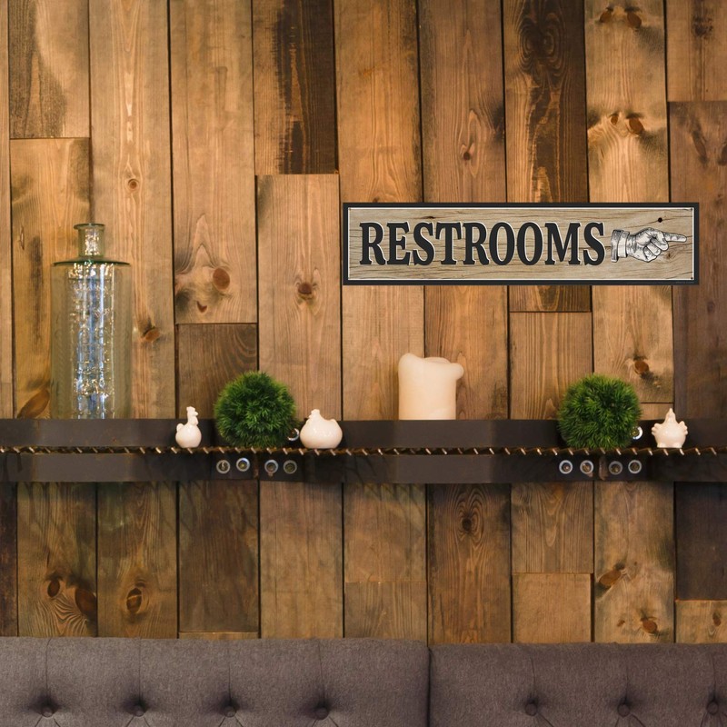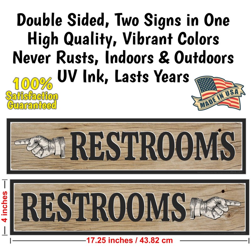 ATX CUSTOM SIGNS - Light Rustic Restroom Hand Pointing Signs - Double Sided Left or Right Pointing 2 Signs Pack