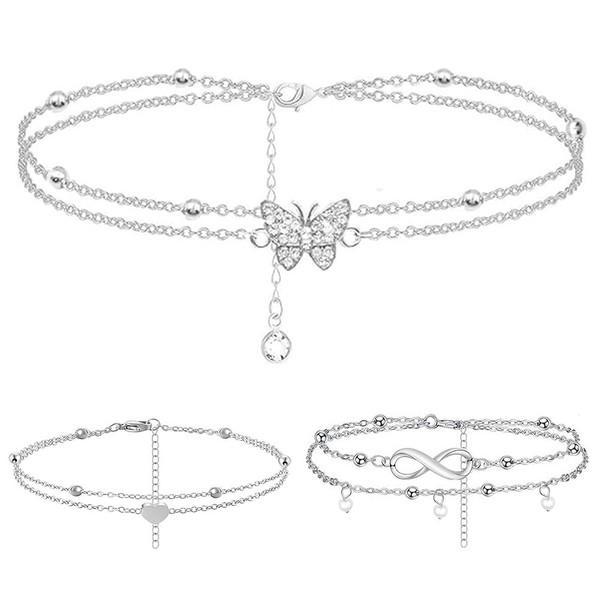 - ✨【Packaging List】Packing List: You will get 3 pieces of silver anklets, including 1 heart-shaped pendant anklet, 1 butterfly silver anklet, and 1 figure-8-shaped anklet. The rich and diverse styles meet your different matching needs.