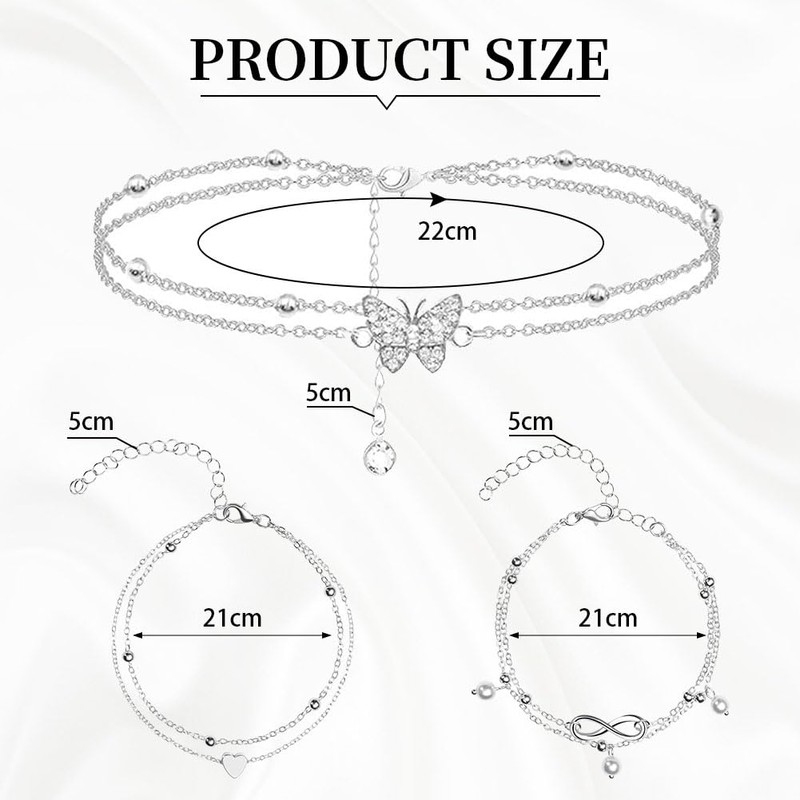- ✨【Adjustable Size】Each anklet is designed with a lobster clasp for easy size adjustment. Butterfly silver anklet measures approximately 22 cm; Heart Pendant Anklet/8-Shape Anklet measures approximately 21 cm and has a 5 cm extension chain for adjustment.