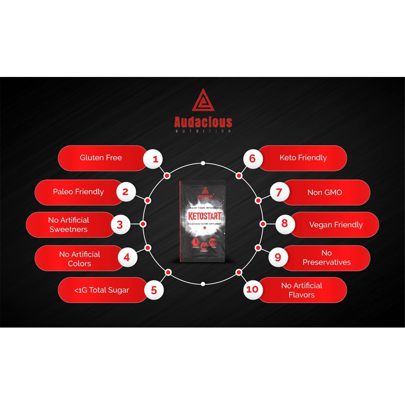 Audacious Nutrition KetoStart+ | Exogenous Ketones Powder with Electrolytes for Energy, Strength & Focus | with Caffeine | Raspberry Lemonade Flavor Electrolyte Powder (10x Ketones Drink Mix Packets)