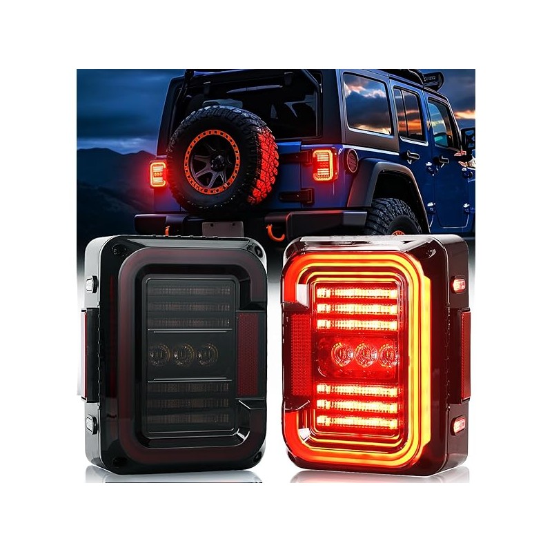 AUDEXEN LED Tail Lights Compatible with Jeep Wrangler JK JKU 2007-2018, Unique C Shaped Design Smoked Lens, 20W Reverse Lights, Built-in EMC, DOT Compliant, 2 PCS