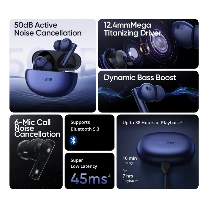 Descripción Limpia: Nombre del producto: Realme Buds Air 5 Earbuds