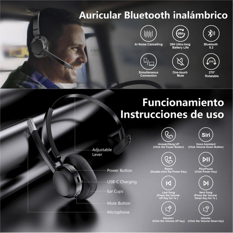 Este auricular inalámbrico Bluetooth tiene tecnología avanzada de reducción de ruido AI, Bluetooth V5.2 y amplia compatibilidad, carga rápida, batería de larga duración y la capacidad de conectarse a dispositivos duales al mismo tiempo.