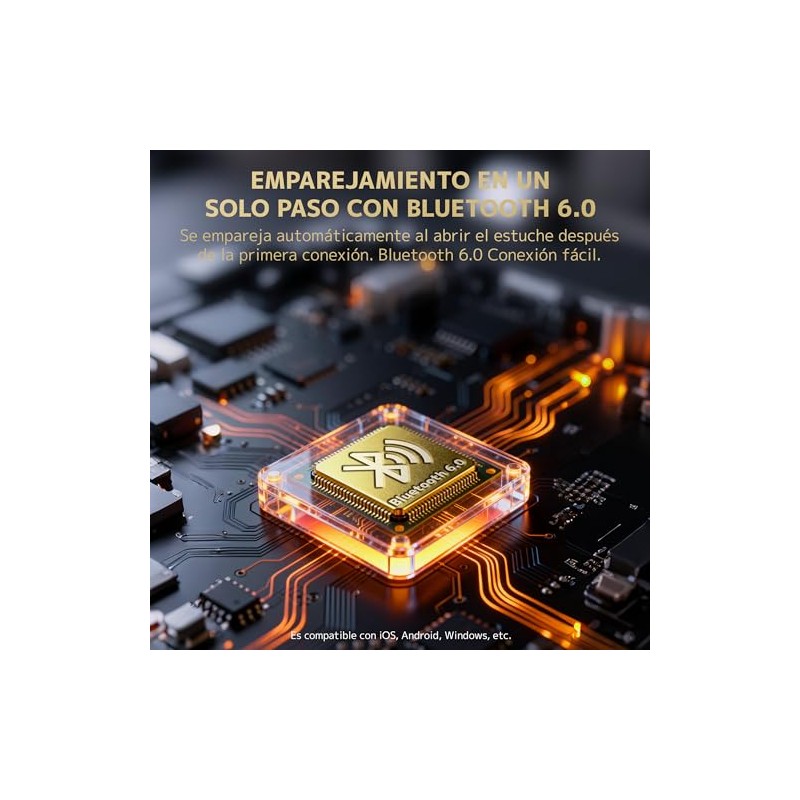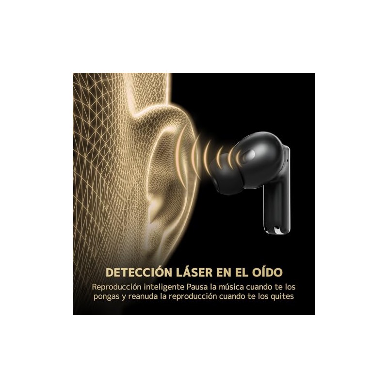 Audifonos Inalambricos con 6 micrófonos Hi-Res Audio ANC Híbrido Cancelación Activa de Ruido hasta 52dB Bluetooth 6.0 con Sensor de Desgaste 36 Horas de Batería con iOS y Android (Negro)