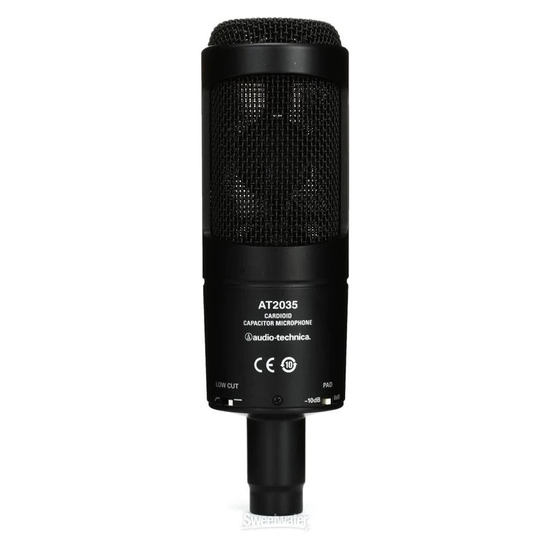 Designed for critical home/project/professional studio applications and live performance, this side-address cardioid studio condenser delivers exceptional detail and low noise. Equipped with a switchable 80Hz highpass filter and 10dB pad, the AT2035 handles high sound pressure levels with ease.