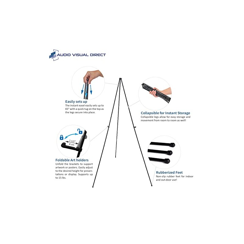 - The instant easel easily sets up to 65" with a quick tug on the top as the legs secure into place.