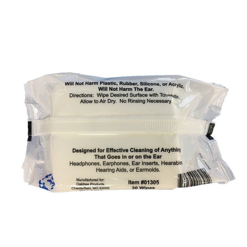 - Towelettes designed to clean hearing aids, earphones, headphones, and any other hard surface or object