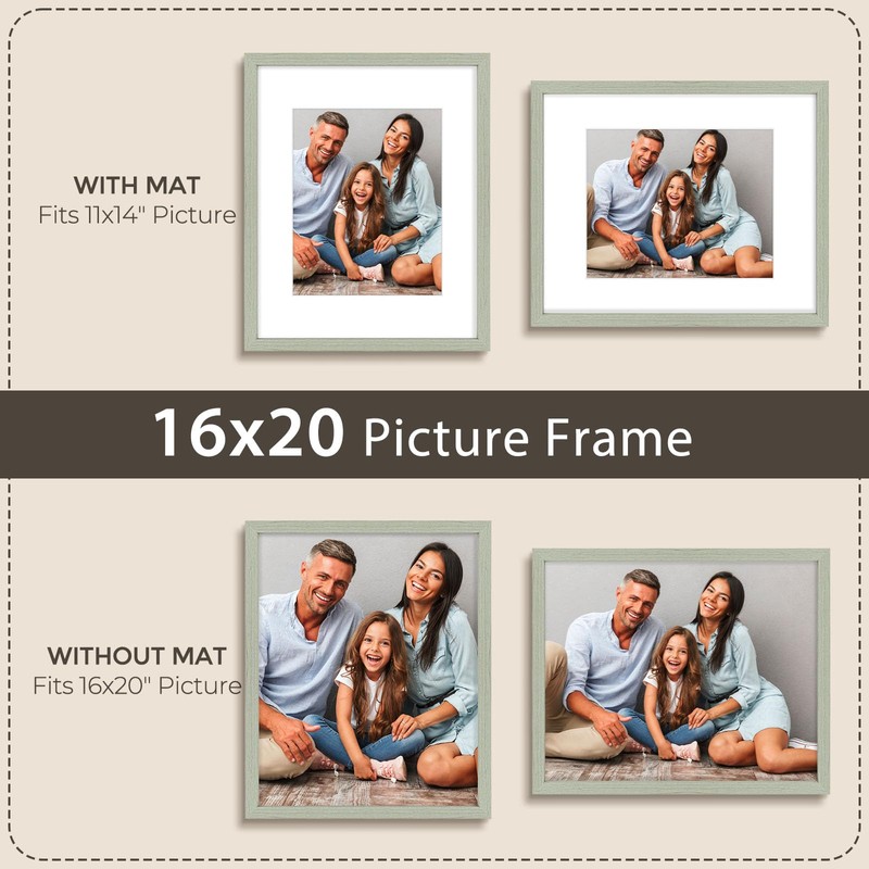 AUEAR, Mulitcolor Gallery Wall Picture Frames 6 Pack With Mat - 3 Pack 11x14 in White & 3 Pack 16x20 in Grey - Engineered Wood Frame With Plexiglass