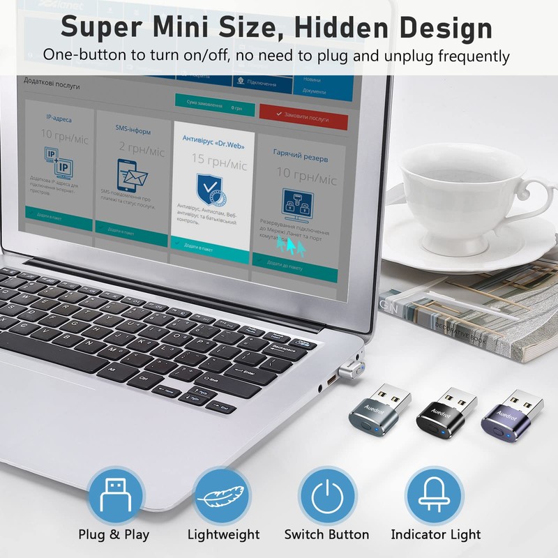Auedrot mouse jiggler, with switch button to turn on/off and freely switch between the "Slight Jiggler Mode" and "Random Jiggler Mode".