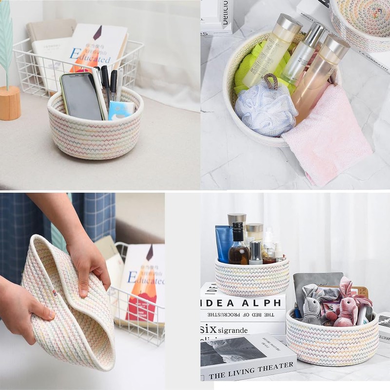 - 💐 Vielseitiger Einsatzbereich: Der Baumwollseilkorb eignet sich hervorragend zur Aufbewahrung von kleinen Dingen. Es kann Spielzeug, Kleidung, Kosmetika, Toilettenartikel, etc. halten. Es ist geeignet für Nachttisch, Bücherregal und anderen Orten.