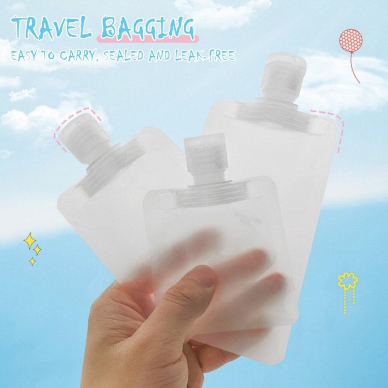 AUGEN Travel - Bolsas de embalaje de maquillaje fluido (30 ml/50 ml/100 ml) - Contenedores de boquilla de pie a prueba de fugas para artículos de cambiador, loción, champú (paquete de 1 juego)