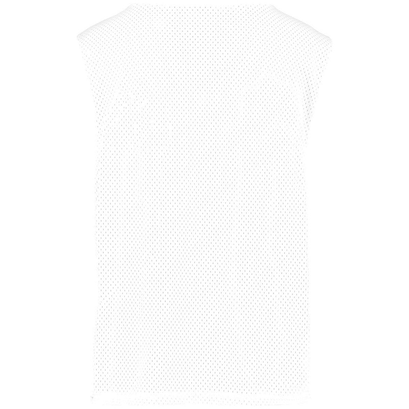 Two layers of 100% polyester sports mesh with color secure that helps prevent dye migration Tear away label Outside locker label Scoop neckline Fully reversible Each layer hemmed separately for easy embellishment