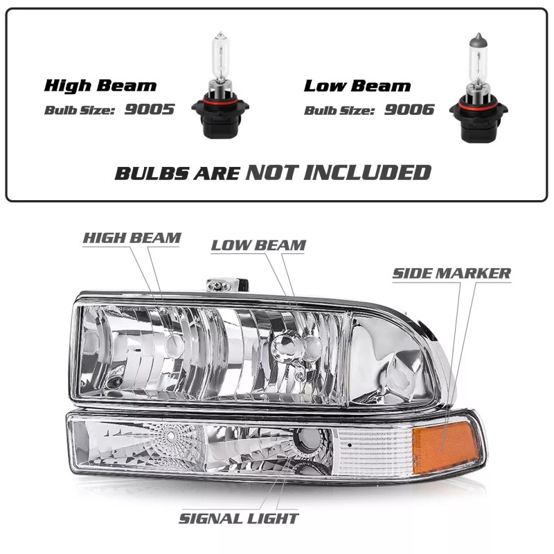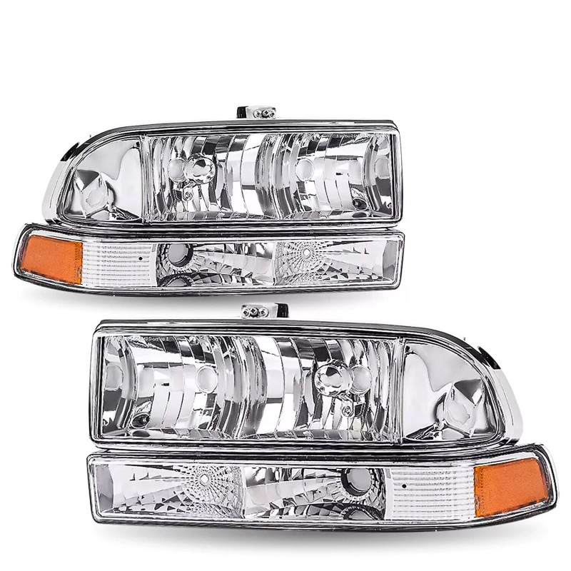 Auheadmotor Chrome/Amber Corner Headlight Bumper Head Lamp for 98-04 CHEVY S10 PICKUP BLAZER
