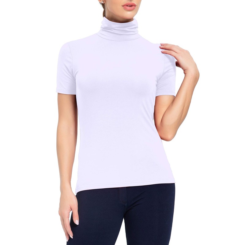 • Super Soft, lightweight, slim fit, short sleeve, mock neck
