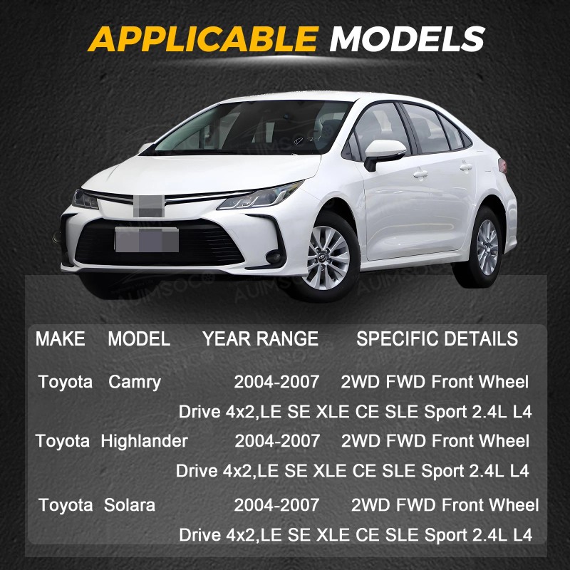 - Interchange Part Number: cv axle joint assembly, Cardan shaft drive train driveshaft driving shaft, passenger right rh side, driver left lh side, 2004 2005 2006 2007 04 05 06 07, Toyota Camry Highlander Solara, 2WD FWD Front Wheel Drive 4x2, LE SE XLE CE SLE Sport 2.4L L4, Constant Velocity Drive Axle Halfshaft