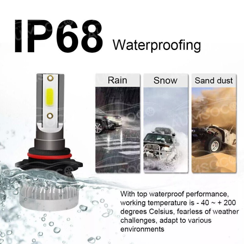 Latest LED chip(USA) light source,2 luminous faces no blind zone 300% brighter than original halogen bulbs Soft White light in solid beam pattern, will not dazzle on-coming traffic.