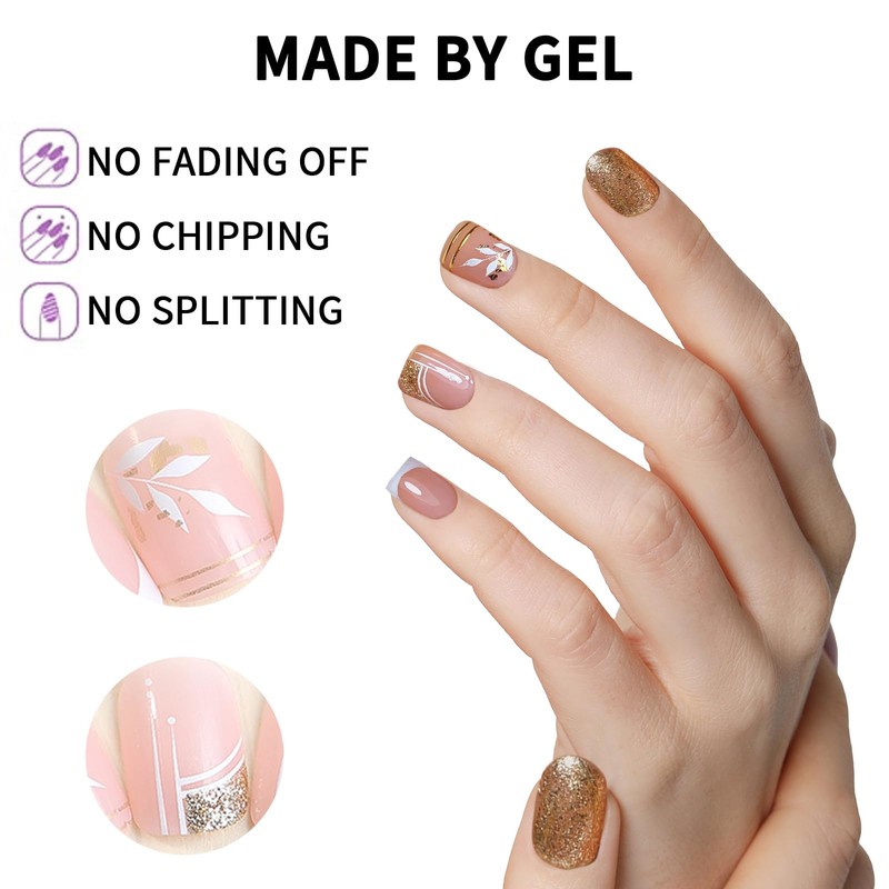 • Versatile use: Auiremrti French tip leaf nail designs make you stand out at parties, dates, weddings and proms. These false nails are also a wonderful gift for your sister, wife, family or girlfriend. With these artificial nails you can add style and elegance to any occasion and bring joy to special moments