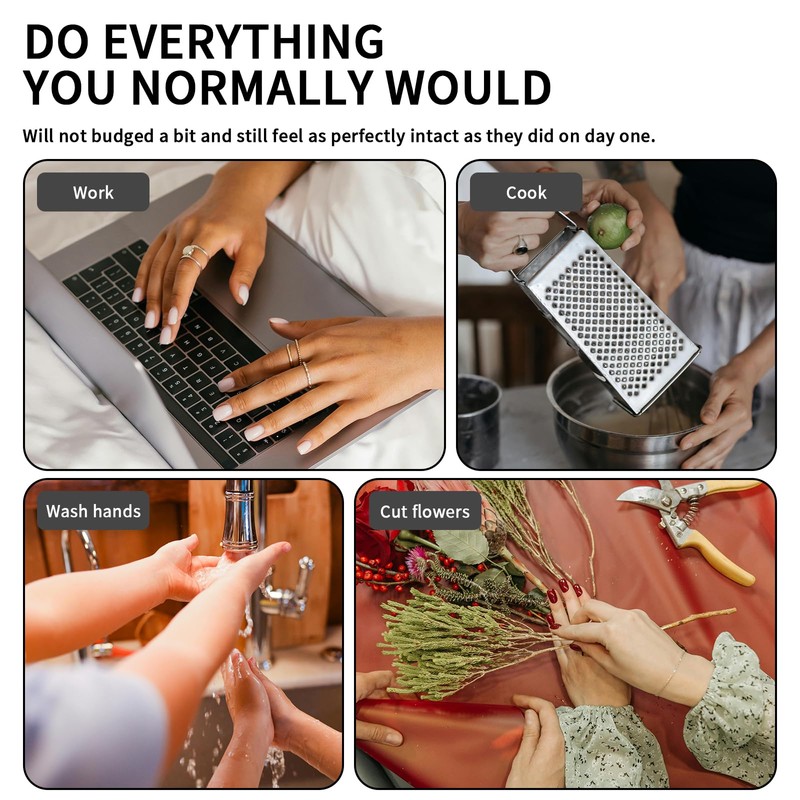 • High Quality Material These French Tip Press On Nails are made of high quality ABS environmentally friendly acrylic material. They offer a natural fit with a natural appearance while being comfortable to use. These stick-on fingernails are durable and safe for your nails, so you can present yourself in style and carefree