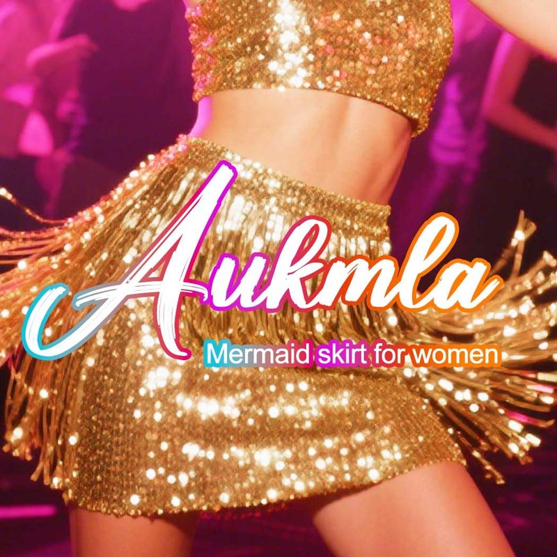 Aukmla Gold Sequin Fringe Skirt Sparkly Belly Dance Mermaid Costume Skirts (US, Alpha, One Size, Regular, Regular, Gold)