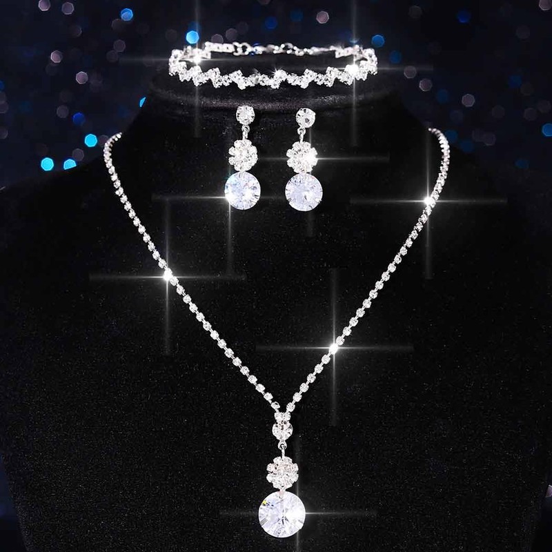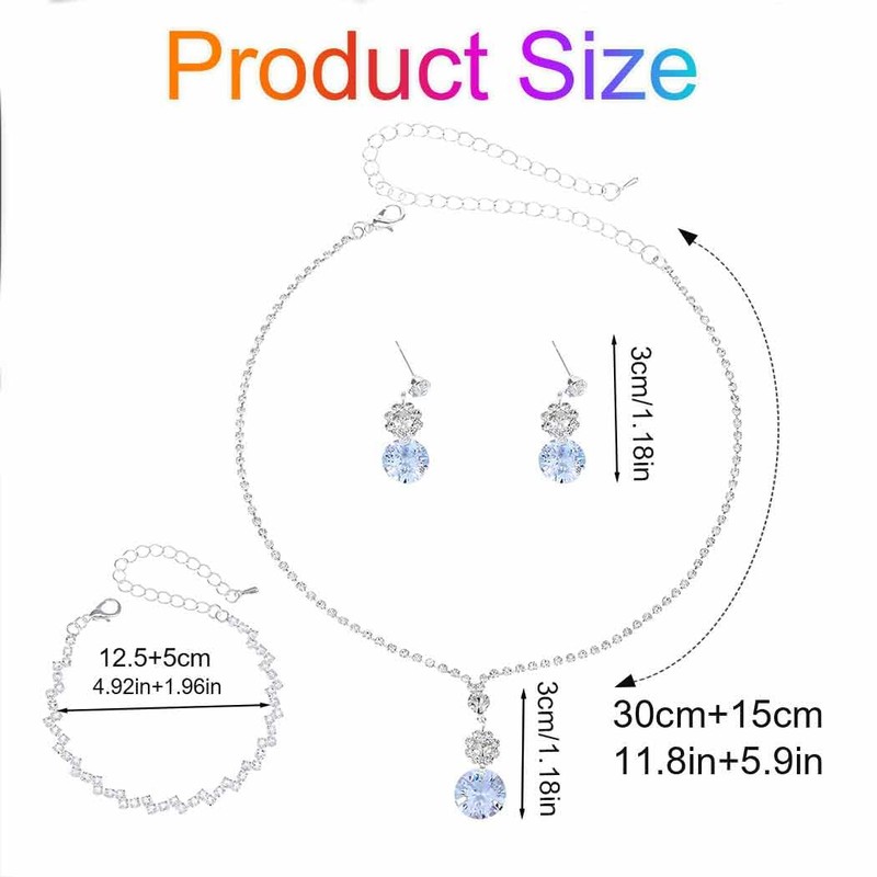 - Rhinestone necklace for women package include: 1 necklace, 2 earring and 1 bracelet .