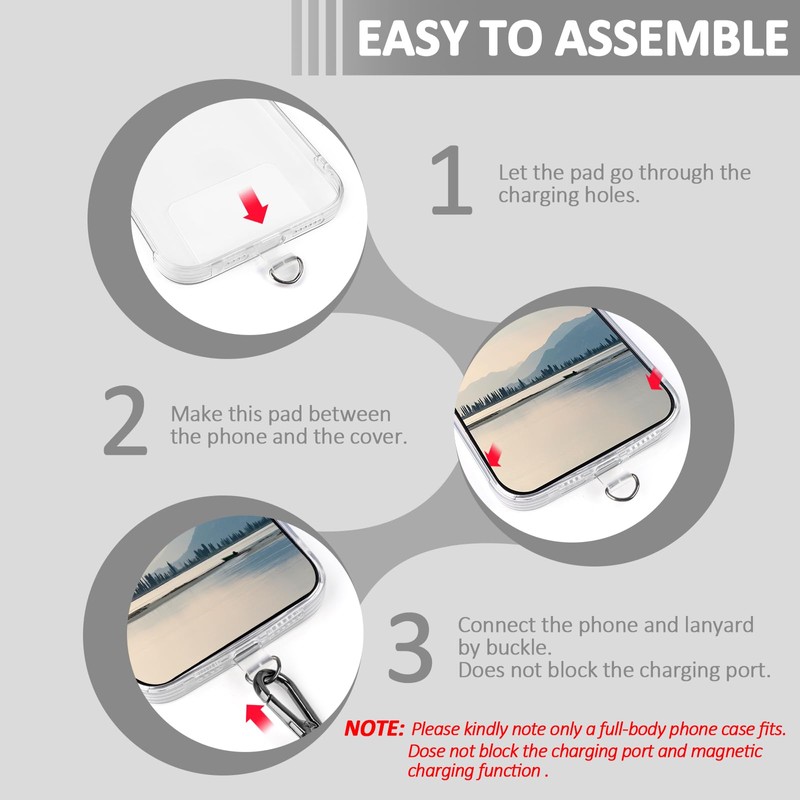 - [Convenient to Use]This universal phone lanyard is easy to install and use, and connects to your phone through a patch, so you don't have to worry about blocking the charging port