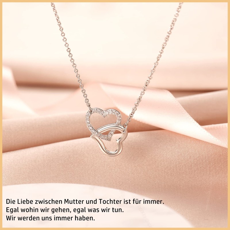 - Necklace for mum --- The love between mother and daughter is forever, nothing can change. This mother necklace design with 2 connected hearts means that the heart of the daughter is firmly connected to her mother, whether rich or poor, sick or difficult. Make this heart necklace pendant mum necklace as a mother gift, let your mother know how much you appreciate and love her