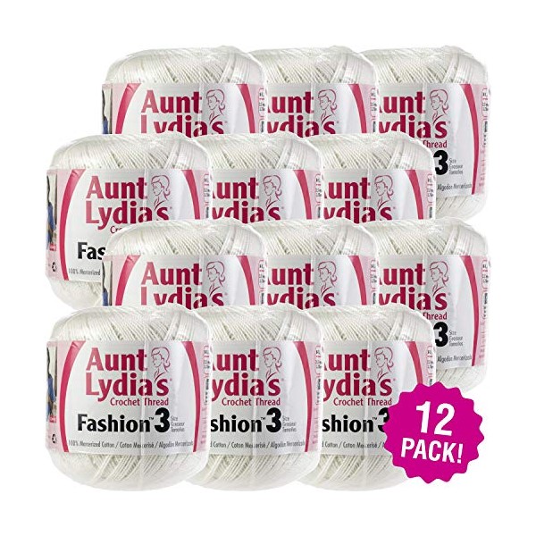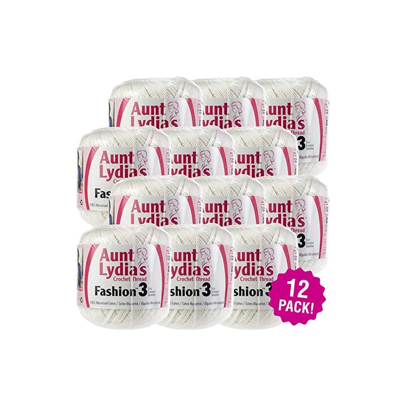 Aunt Lydia's White Fashion Crochet Thread Size 3 12/Pk 12 Pack