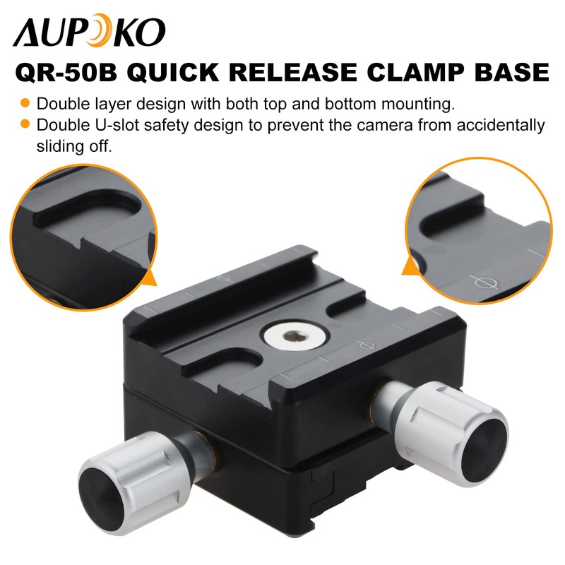 • ► [Service] Package Included: 1 x Quick Release Plate Clamp QR-50B Aupoko relies on high-quality products and customer-oriented service. If you have any questions about the adapter, please contact us. We will reply within 24 hours and solve the problem for you.