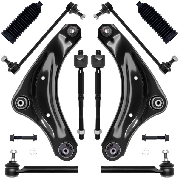 AUQDD 10Pc Front End Suspension Kit Fit For 2013-2024 Ni-ssan Leaf, 2 Lower Control Arm w/Ball Joint 2 Sway Bar Link 4 Outer Inner Tie Rod End (# K621156 K621157 K750719 EV800951 ES801171)