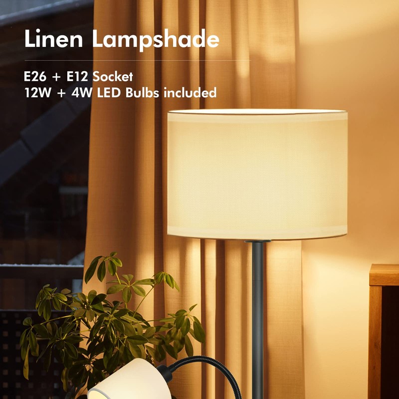 - 🎆[LIVING ROOM FLOOR LAMP] The floor lamp modern features white linen fabric shade and matte black metal pole for high stability and long durability. Equipped with 12W, 4W LED bulbs, this standing lamp offers customizable lighting options to suit various settings, creates a warm and fancy ambiance, adding a touch of elegance to any room.