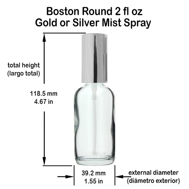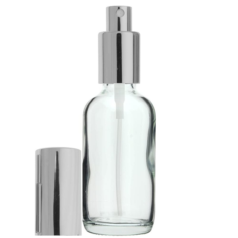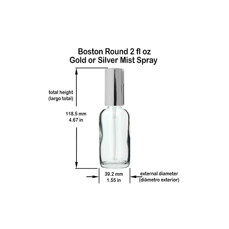 Aura Variety 72 BOTTLES 2 OZ 60 ML BOSTON ROUND CLEAR EMPTY REFILLABLE GLASS BOTTLE WITH FINE MIST SILVER SPRAYERS (Perfume Fragrance Cologne Essential Oil Atomizer)