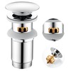 Auralum Stainless Steel Sink Plug, Drain Plug with Brass Anti Clogging Strainer, Pop Up Drain Valve with Overflow, Drain Fitting for Sink and Washbasin, Chrome-Plated