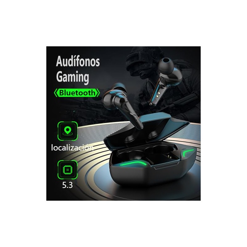 🌟 ⭐ Auriculares Inalámbricos Bluetooth con Estuche de Carga, LED Verde, Negro ⭐ 🌟