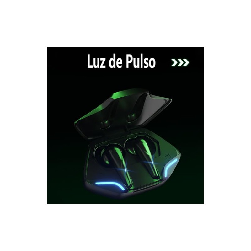 Auriculares Inalámbricos Bluetooth con Estuche de Carga, LED Verde, Negro