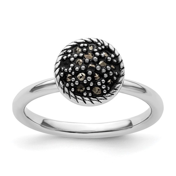 - PRODUCT SPECIFICATIONS : Sterling Silver Stackable Expressions Marcasite Ring Size 7, Material Purity:925|Finish:Polished|Stone Color_1:Black|Stone Quantity_1:15|Plating:Rhodium|Band Width:2.25 mm|Stone Setting_1:Prong Set|Stone Weight_1:0.15 ct|Feature:Solid|Manufacturing Process:Casted|Material:Sterling Silver|Stone Shape_1:Round|Stone Size_1:1.2 mm|Material Color:White|Ring Type:Stackable|Stone Type (Other)_1:Marcasite