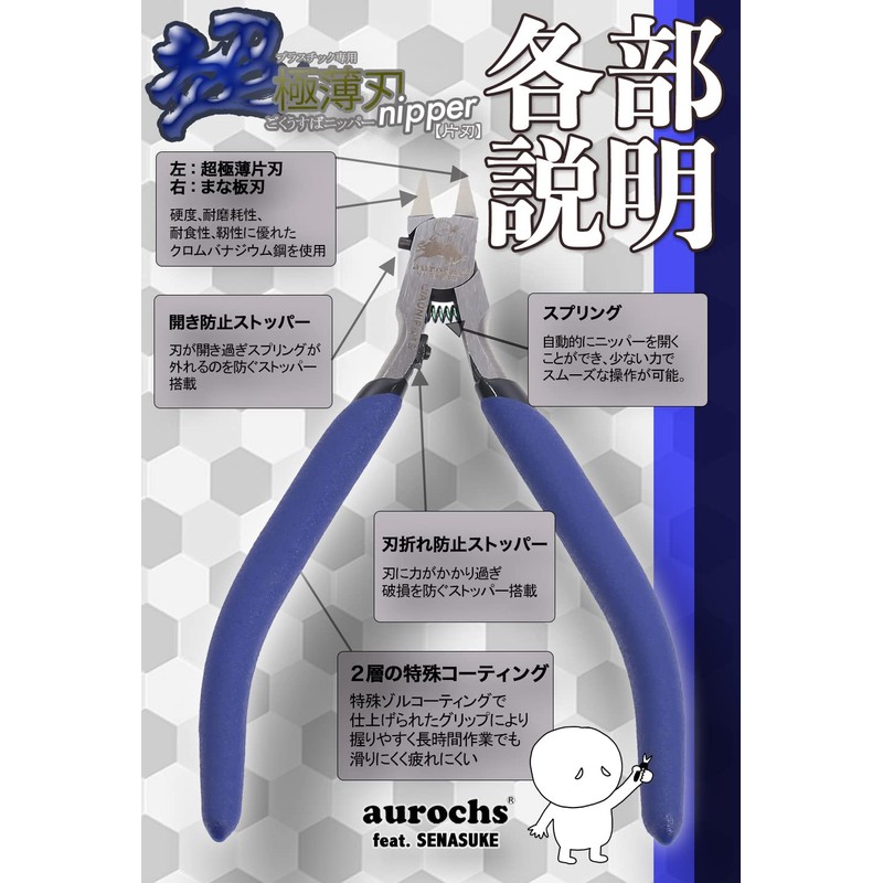 aurochs Ultra-Thin Blade Nipper, Single Edge, Precision tool, Senasuke model, Senasuke Blue