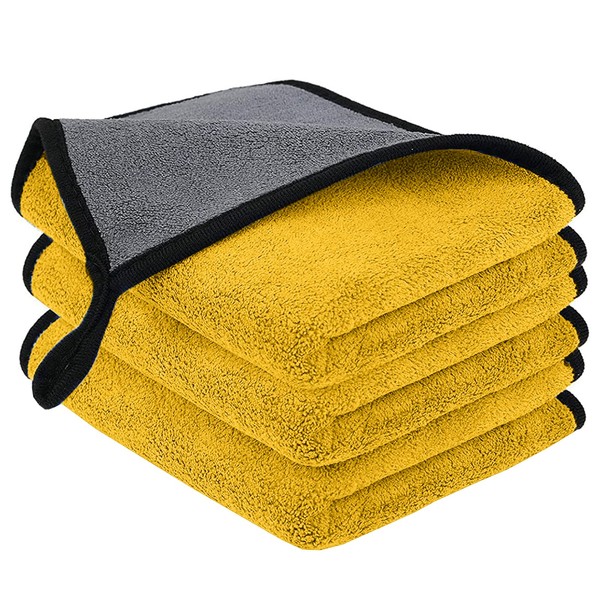 Auronna 800GSM Microfiber Cleaning Cloths 2 Layer - 40 x 40 cm Super Absorbent Cleaning Towel for Household And Car Washing, Drying, Detailing (Pack of 3, Yellow/Grey)
