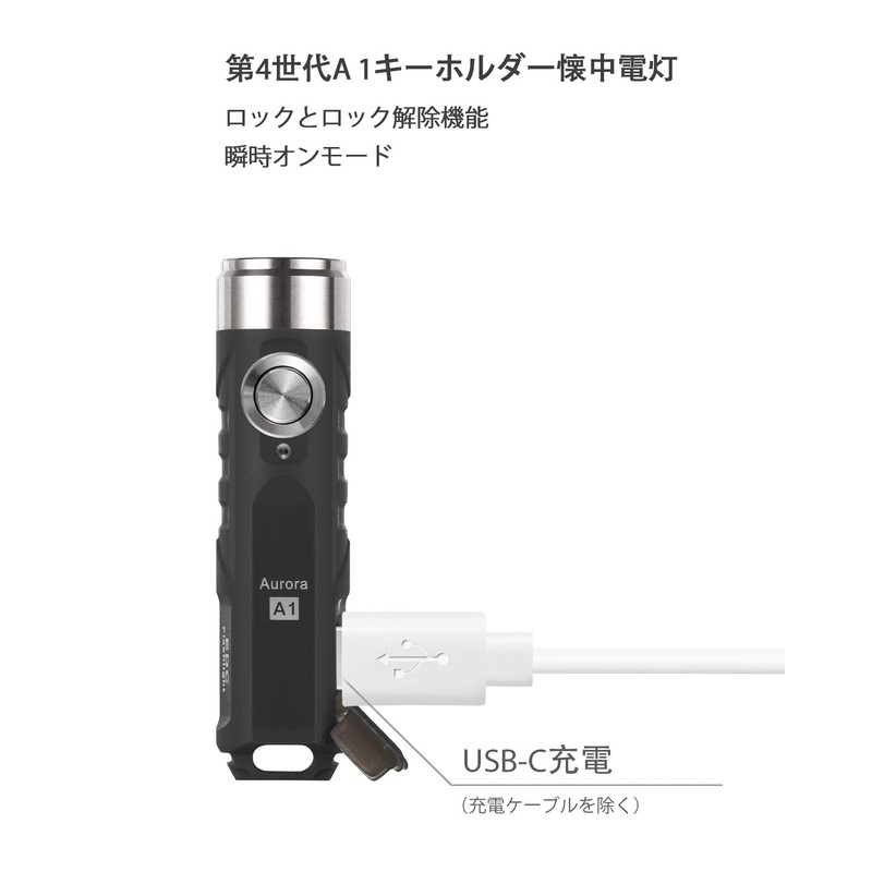 Aurora A1-G4 Small Flashlight High Lumens, USB-C, 650 Lumens, 6500K Mini Keyring Torch (Black)