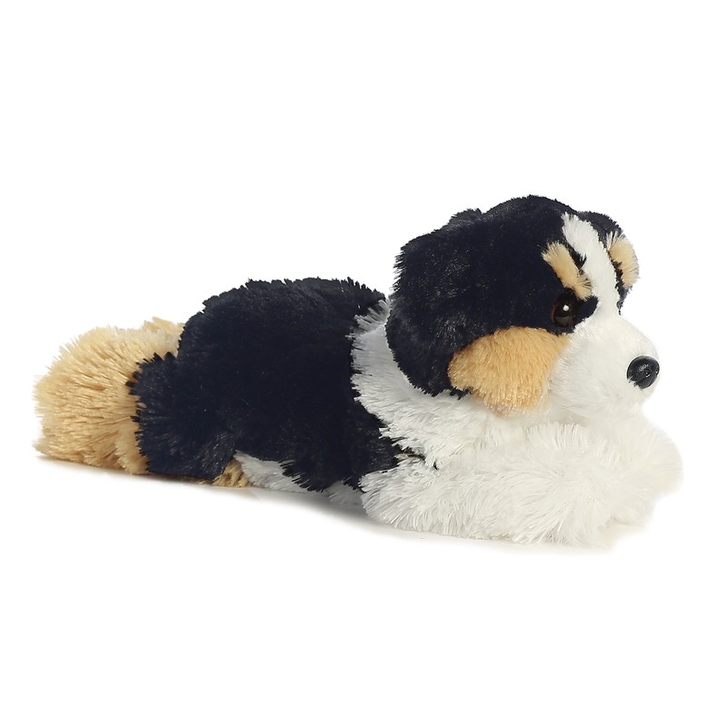 This 12 inch long Auzzie puppy boasts a long coat youll love to stroke. Featuring the black, tan, and white colors of the traditional Auzzie, hes a cutie!