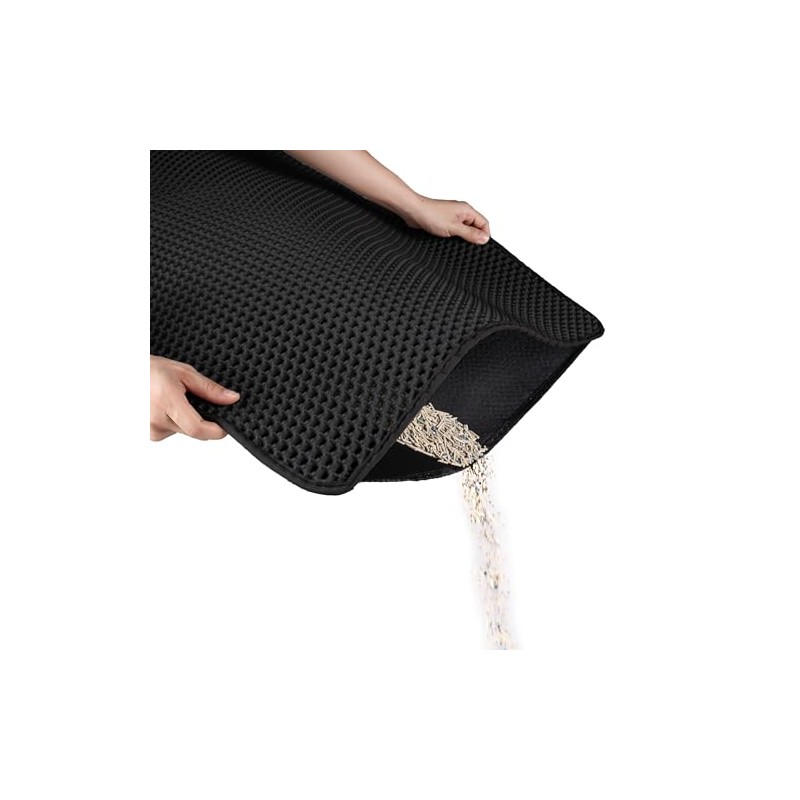 Aurorique Cat Litter Mat (23.6" x 17.7") - Double-Layer, Non-Toxic, Easy Clean, Durable, Black