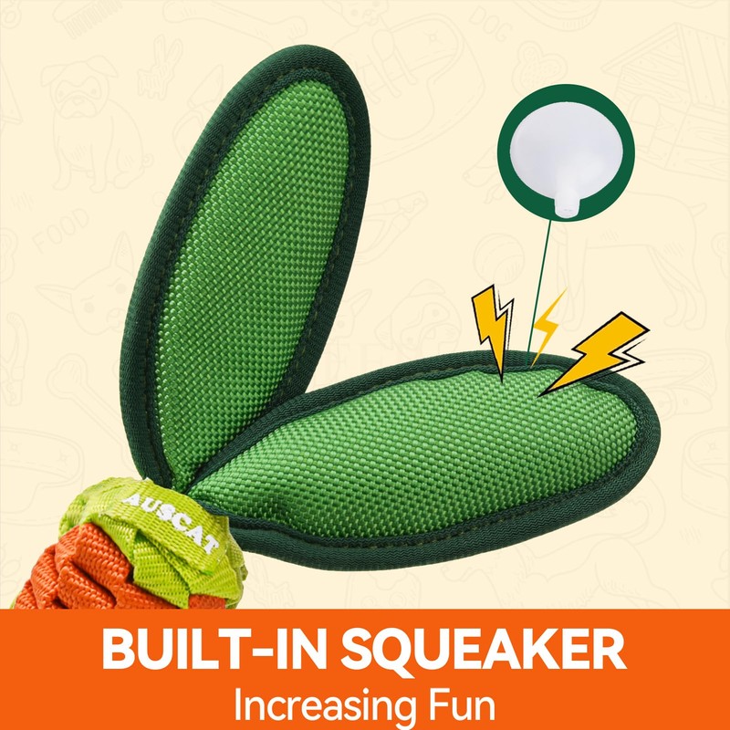 AUSCAT 2PCS Carrot Dog Rope Toy, Durable Braided Teething Toys, Tug of War Toy with Squeaker for Small Medium Large Dogs