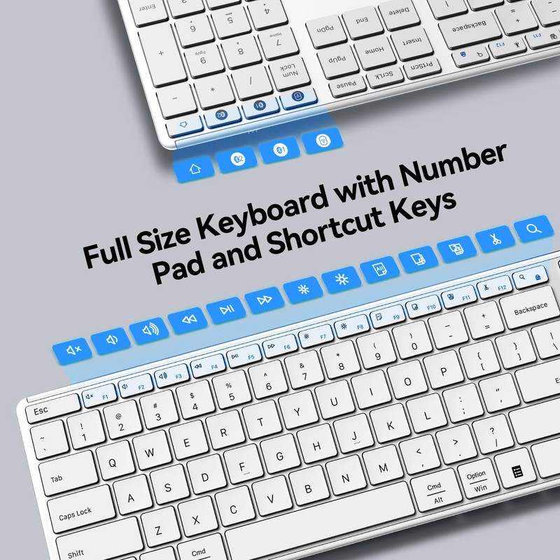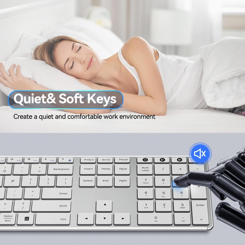 - Comfortable Silent Typing: The highly responsive scissor-switch structure ensures a precise, quiet, and comfortable typing experience. Low-profile keys and a fashionable soft touch design make our wireless bluetooth keyboard an efficient, stylish addition to your workspace.