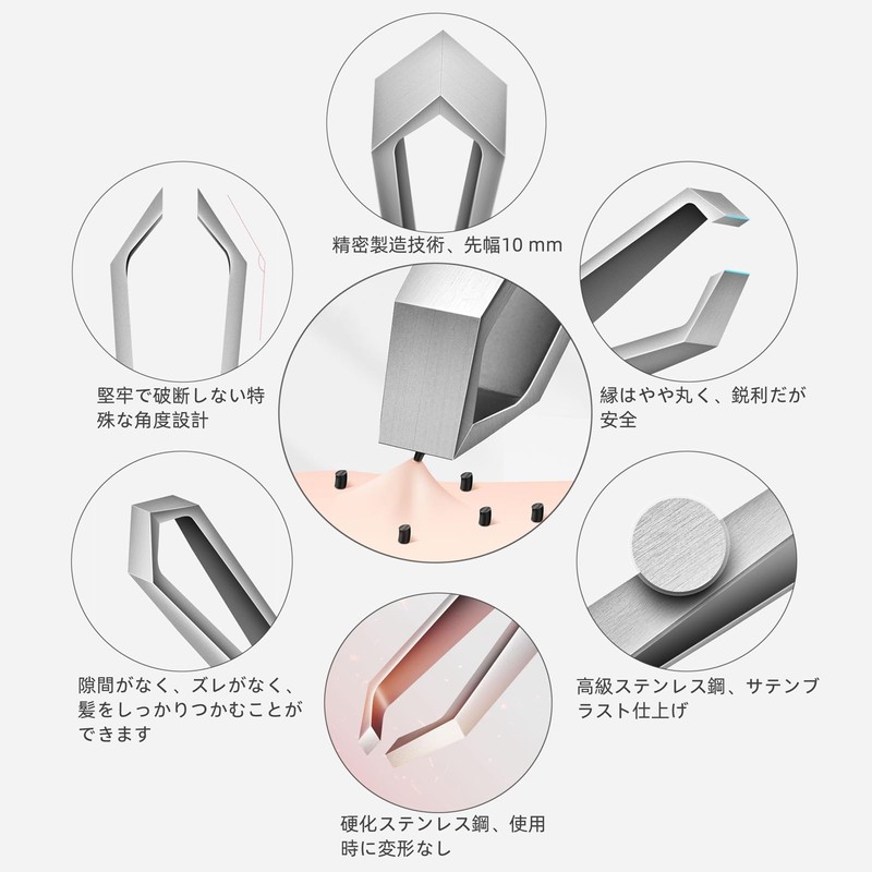 • 【眉毛、まつ毛、その他の不要な毛にも適用】ひげや白髪を抜くほか、このピンセットも眉毛、まつ毛、鼻毛、顔の毛、わき毛、その他の不要な毛の完璧な美容ツール/除去ツールです。角質層クランプとしても使用できます。