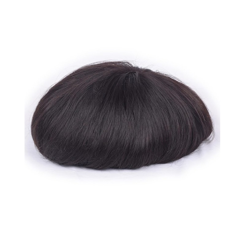Auspiciouswig Fine Mono Human Hair Toupee, Hair Replacement System NPU Around, Men's Toupee for Men (6 x 8 Inches, Natural 1B)
