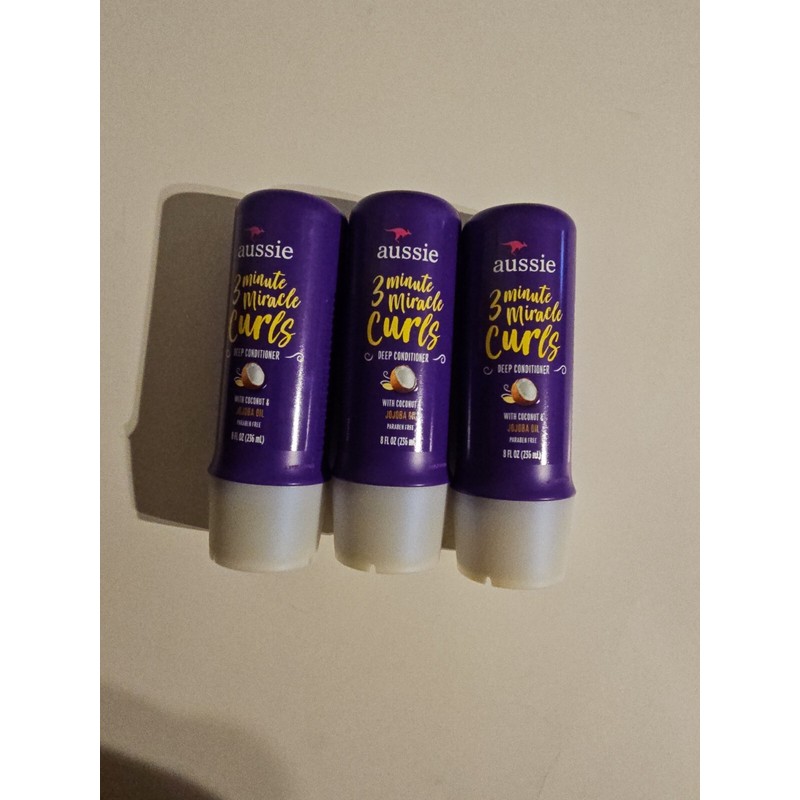 3 Pack Aussie 3 Minute Miracle Curls Deep Conditioner Coconut Jojoba 8 Oz..