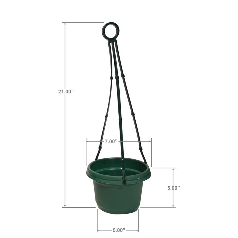 Austin Planter, Plastic Hanging Flower Pot, (7 inch, Hunter Green 5 Pack