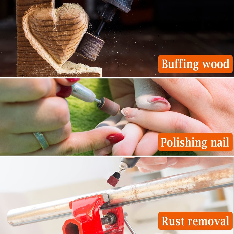 • Essential 3 grits accessory - these rotary sanding brands contain 3 sanding grits (80 grit, 120 grit, 240 grit) and 3 diameters (1/2", 3/8" & 1/4"). Each grit and size has 20 pcs sanding drums for your using