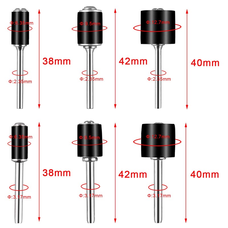 Drum mandrels size: 1/2 inch, 3/8 inch and 1/4 inch