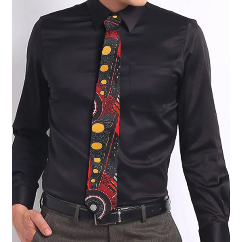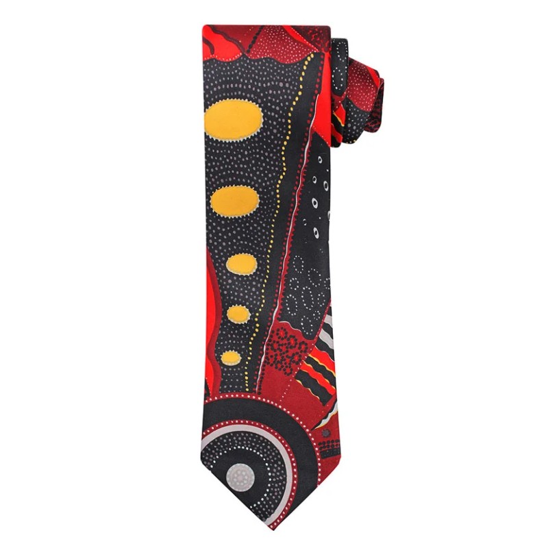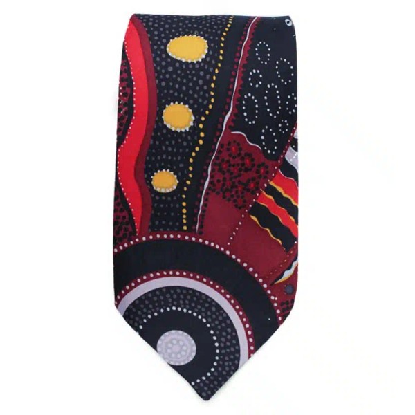 Add a splash of colour and sophistication to any outfit with our gorgeous Aboriginal ties. Made right here in Australia and featuring authentic Aboriginal art, these Outstations ties are a stunning Australian gifts that are lightweight and easy to send anywhere in the world. Each sale generates a royalty that is paid directly to the artist which helps support Aboriginal artists and communities across Australia. So whether you’re looking for a new tie to add to your own wardrobe or a gift for friends or family, these stunning ties are a must have!